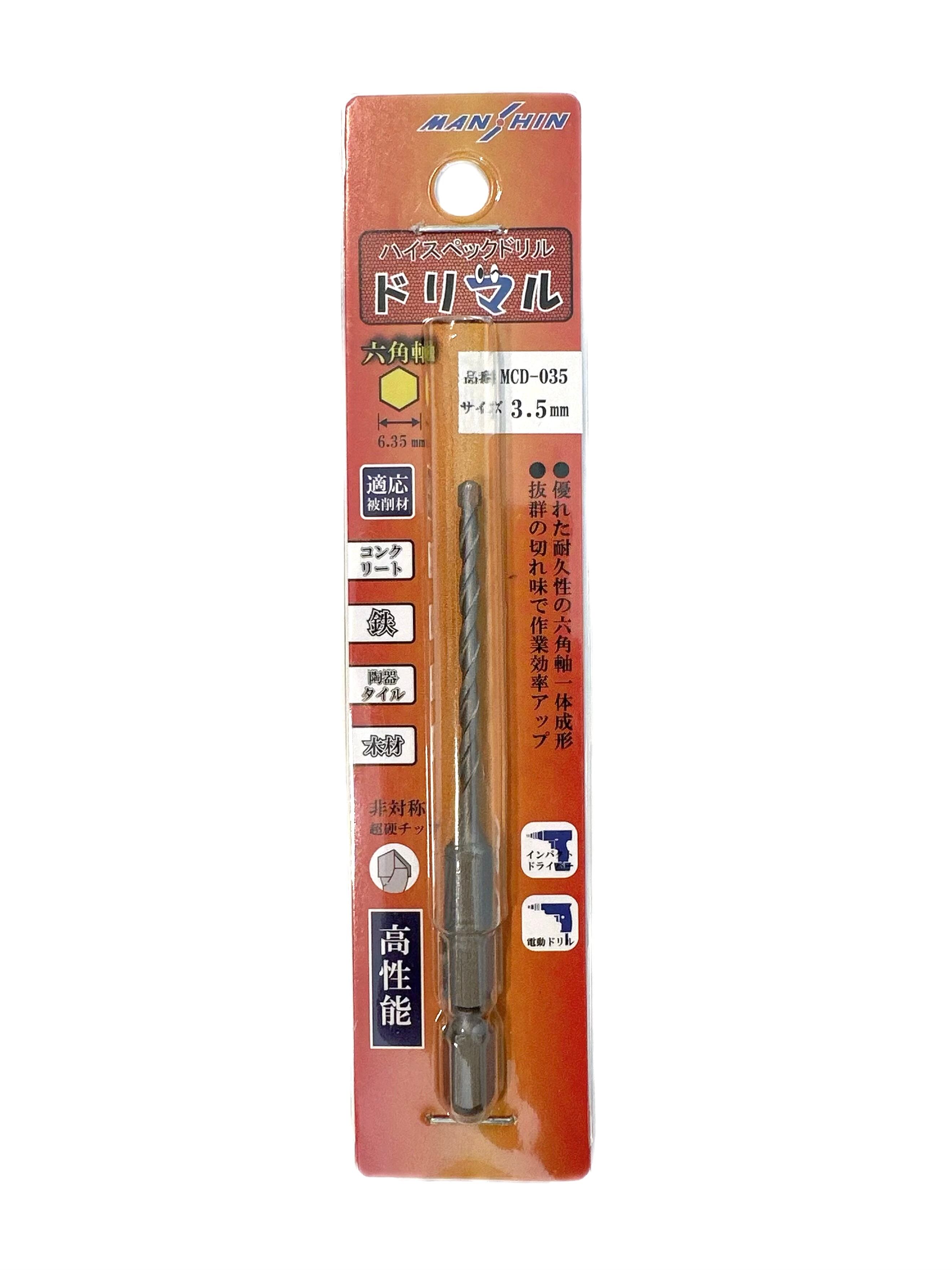 【送料無料】【MANSHIN】コンクリートドリル ドリマル 3.5mm 六角軸 陶器タイル 木材 ブロック モルタル インパクトドライバー 電動ドリル 多用途ビット クロスシンニング加工 切れ味抜群 作業効率向上 | MANSHIN - Webショップ